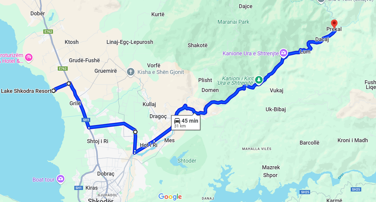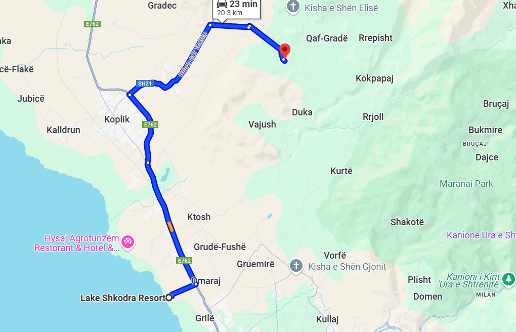 From Shkodër: About 30 km (40 minutes by car) via a well-paved road.