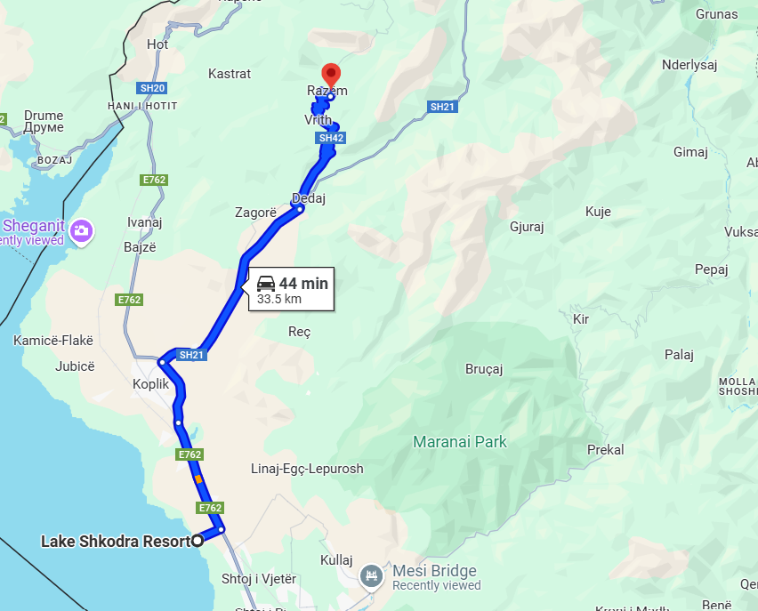 From Shkodër: Take the road toward Koplik, then follow the signs to Razëm.
