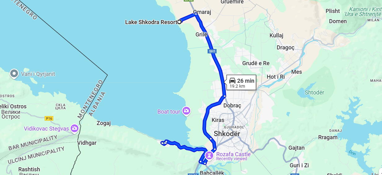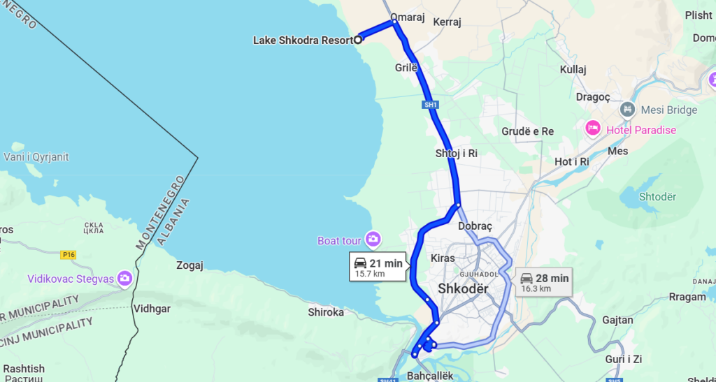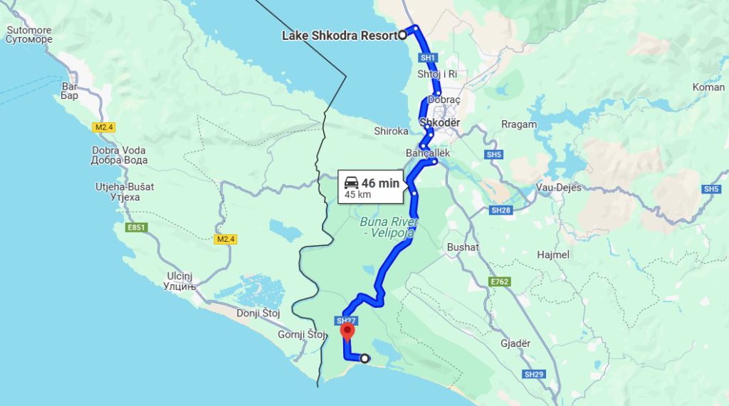 From Shkodër: Only 5 km away, reachable in 10 minutes by car, bike, or even a nice lakeside walk.